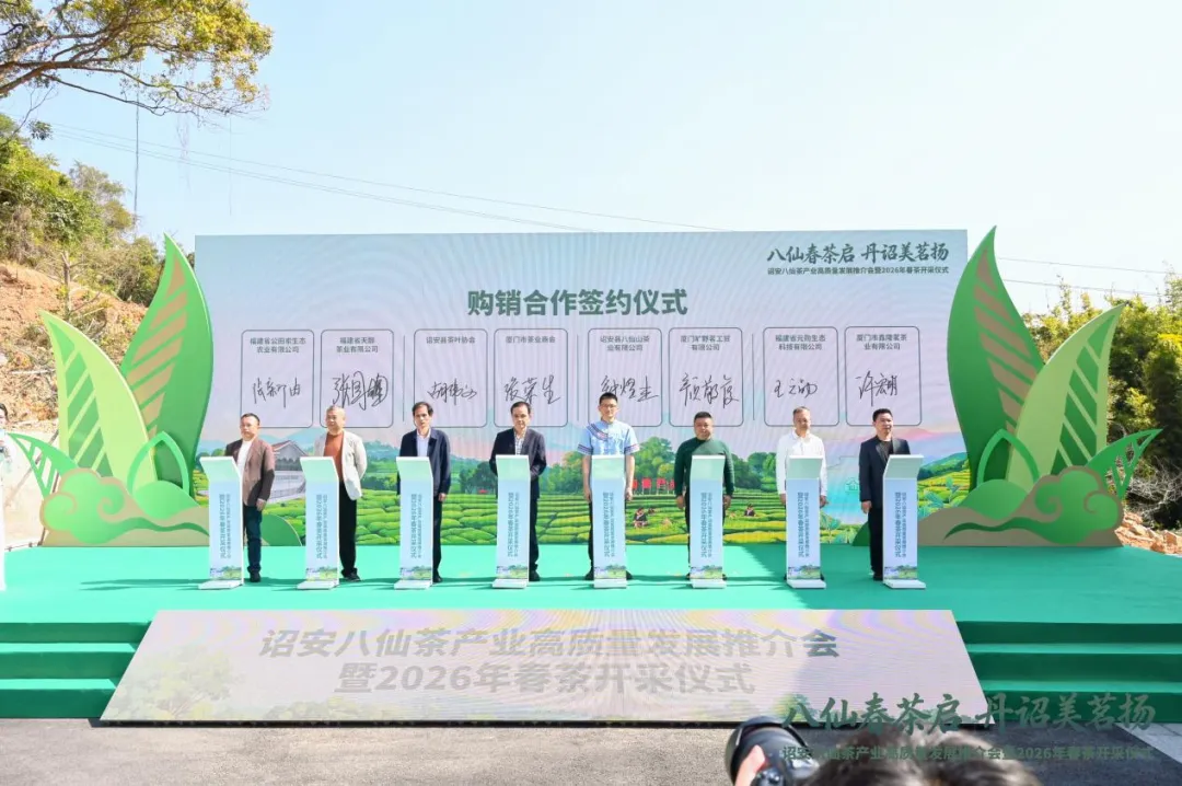 据了解,当前诏安县八仙茶种植面积达5.72万亩,产量超1.93万吨,全产业链总产值达22亿元,拥有茶叶加工厂350多家,让数万茶农实现家门口就业增收,盛满群众实实在在的幸福感和获得感。下一步,诏安县将以本次春茶开采为契机,以八仙茶为纽带,聚焦产业兴旺,持续做优茶品质、做强茶品牌、推动诏安八仙茶产业高质量发展。