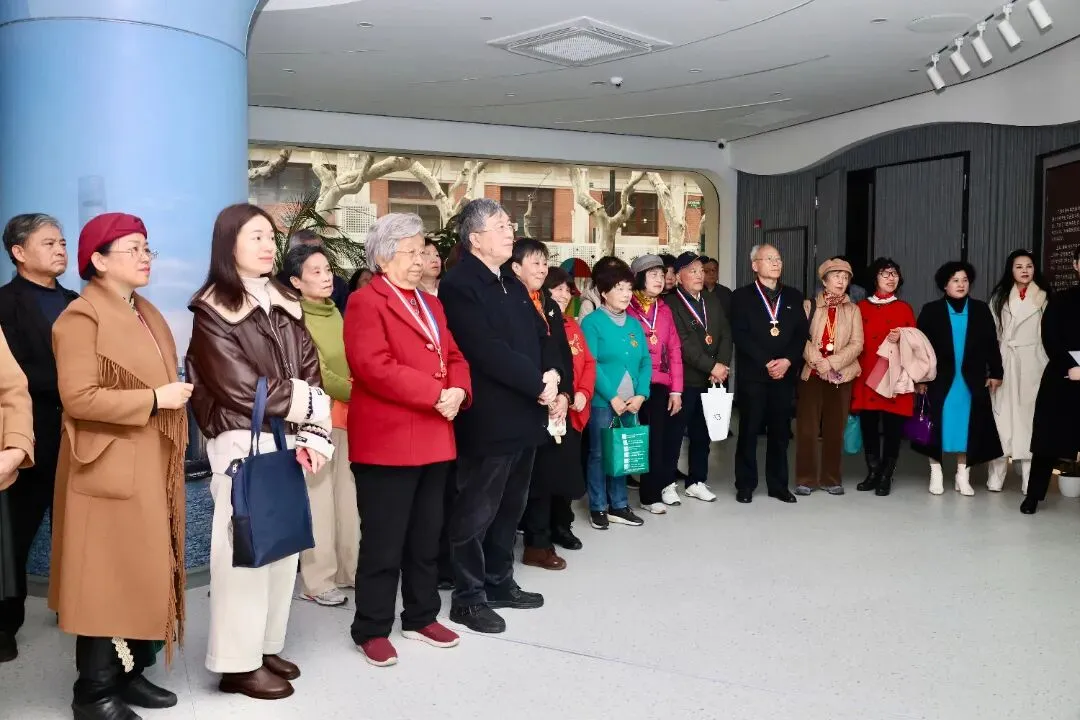 跟随讲解员的步伐,百老讲师团成员参观了“觉醒·解放”“新生·自强”“奋进·建功”“时代·使命”四大篇章,在文物实物、文献、影像资料、AI视频前,大家仔细观看展品细节、交流参观心得。“这个纺织工人的形象就是我们以前上班时的样子,机器不能停,大家三班倒,干得热火朝天的。”“那时刚学习计算机,这种大部头的机器感觉很新鲜,现在一个手机都能搞定了。”在“国之芬芳源:榜样力量更永恒”展品前,黄宝妹捐赠的电影相册、中国共产党上海市第一届代表大会第二次会议代表证、中共八大代表证清晰可见。