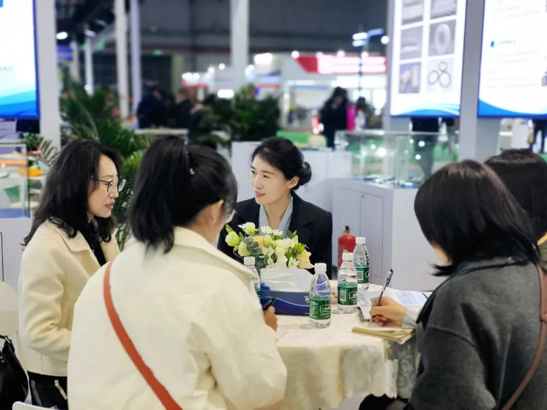 我们展位前也迎来了一波又一波的访客,展台内的粉体和陶瓷产品吸引了很多客户的关注和兴趣,纷纷前来了解咨询、互留名片、寻求合作意向。