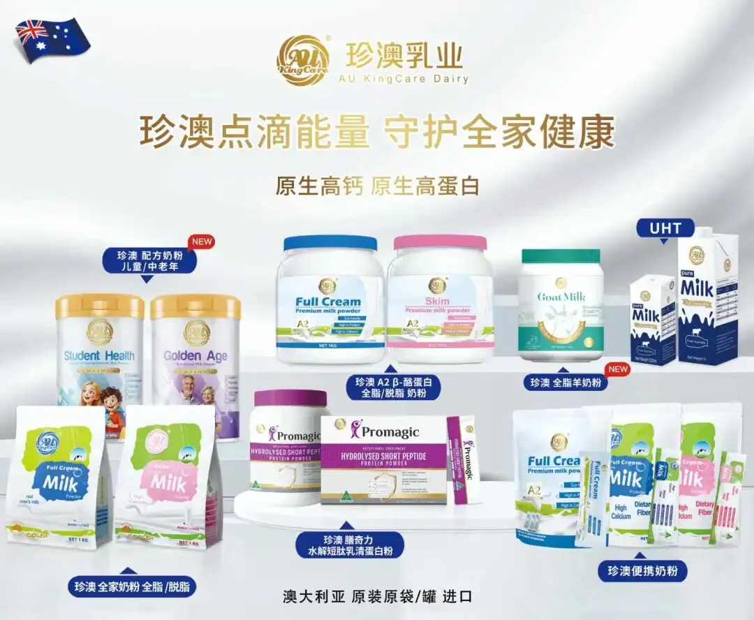 AUSCARE TRADING PTY LTD集团成立于2015年5月,经营自有乳品品牌Au kingcare珍澳,营养品牌 Promagic膳奇力,珍澳(Au Kingcare)是澳大利亚本土的乳制品品牌,旗下系列奶粉是与澳洲知名大学实验室共同研发,基于“珍澳让生活更好,关爱您的每一位家庭成员”的理念,针对不同年龄段的群体:学生、孕产妇、中老年、开发了一系列根据不同的需要提供针对性营养的系列奶粉。珍澳致力于让世界各地的人们品尝到冲出来的鲜奶,所有的奶源来自世界黄金奶源地澳大利亚东南部纯天然牧场一吉普斯兰牧场,传承百年乳制品品质,采用现代化生产工艺。味道纯正、自然。所有产品均在澳大利亚工厂完成生产、罐装.全程透明、可追溯。确保产品安全、新鲜。