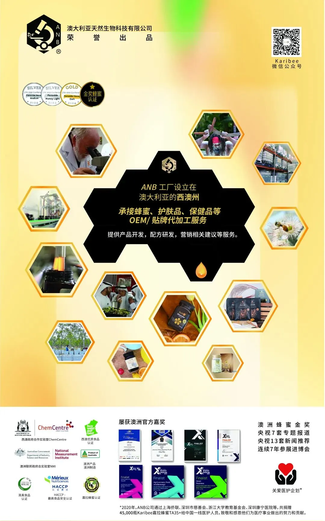 澳大利亚天然生物技术有限公司(ANB)是澳大利亚最早专注于生物医药、健康食品、天然营养补充剂和化妆品的企业之一,集研发、生产和贸易于一体。除了生产一系列优质产品外,ANB 还持续支持社区和环境发展,成为生物天然健康领域最值得信赖的品牌。
