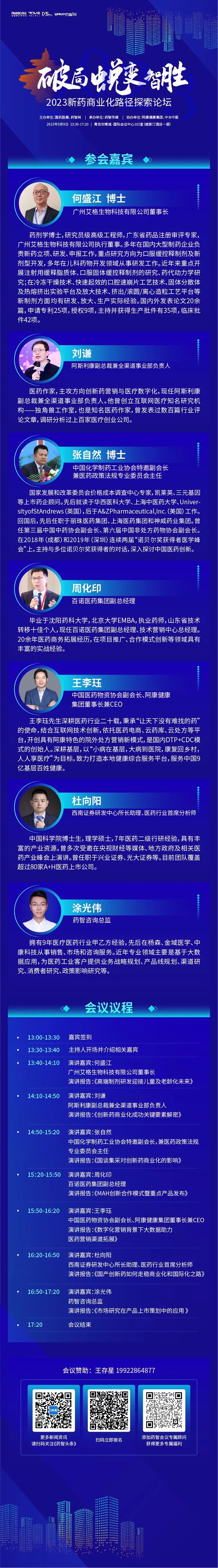 经过近十年发展,我国已成为世界范围内为数不多的能自主研发生物创新药的国家,国际化已经成为我国生物创新药企产品的商业化方向,大批中国药企进入了“商业化”元年时代。在创新药行业,新技术的突破并非一个产品的终极使命,适应瞬息万变的商业环境,寻求更大合作平台,达成长期战略合作,才能运筹帷幄,成为最终王者。由国药励展、药智网主办,药智传媒承办的“破局·蜕变·智胜—2023新药商业化路径探索论坛”将在2023第86届全国药品交易会(青岛药交会)精彩亮相。将聚焦临床策略、新药开发进度、产品布局、商业前景等问题,剖析中国创新药商业新路径,探析未来合作新模式。