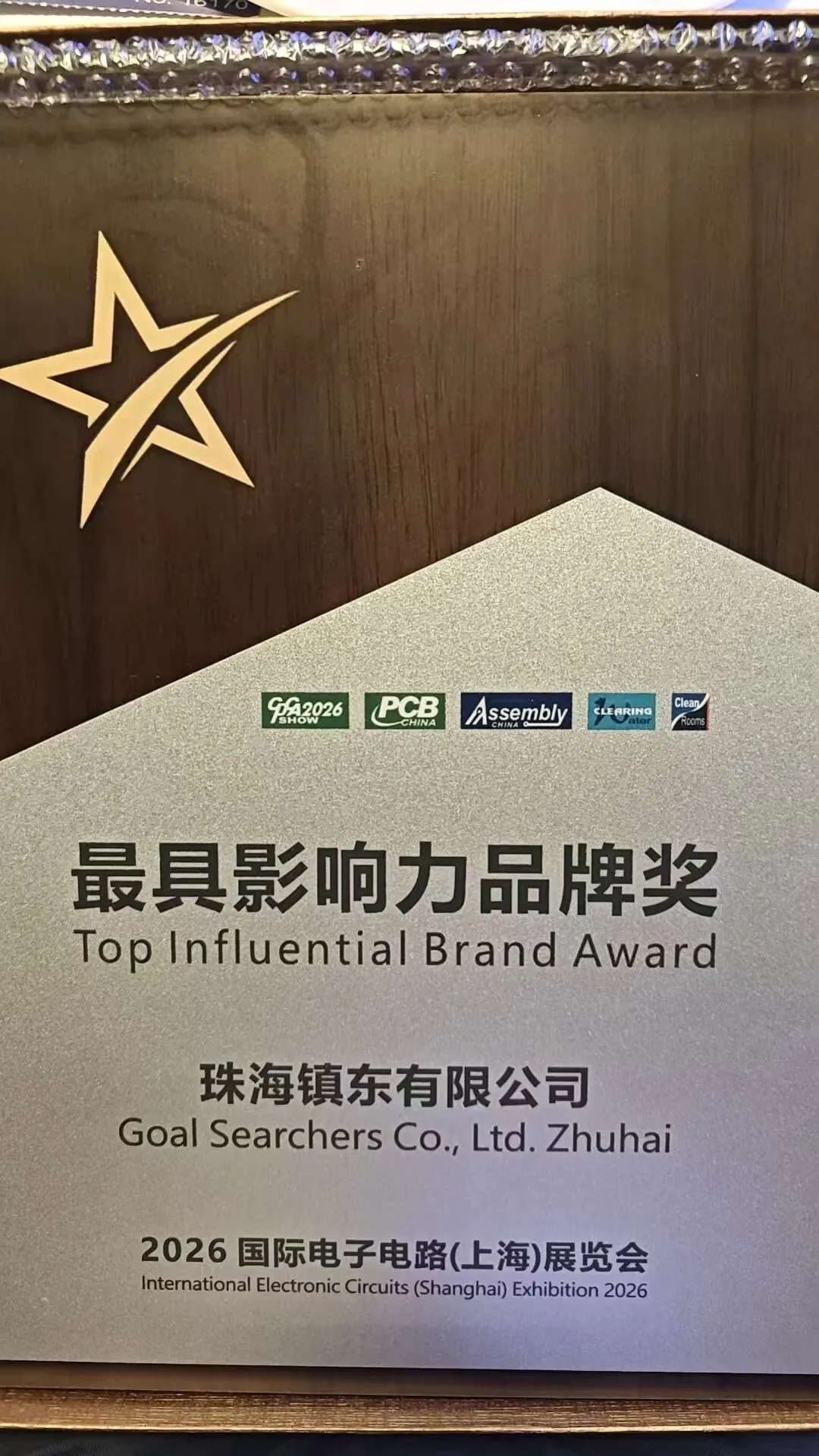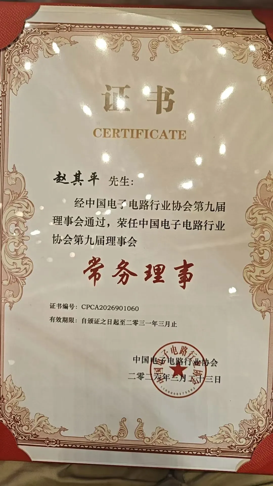 展会期间喜讯频传,珠海镇东有限公司荣获最具影响力品牌奖;赵其平总经理荣任中国电子电路行业协会第九届理事会常务理事、第五届科学技术工作委员会委员。