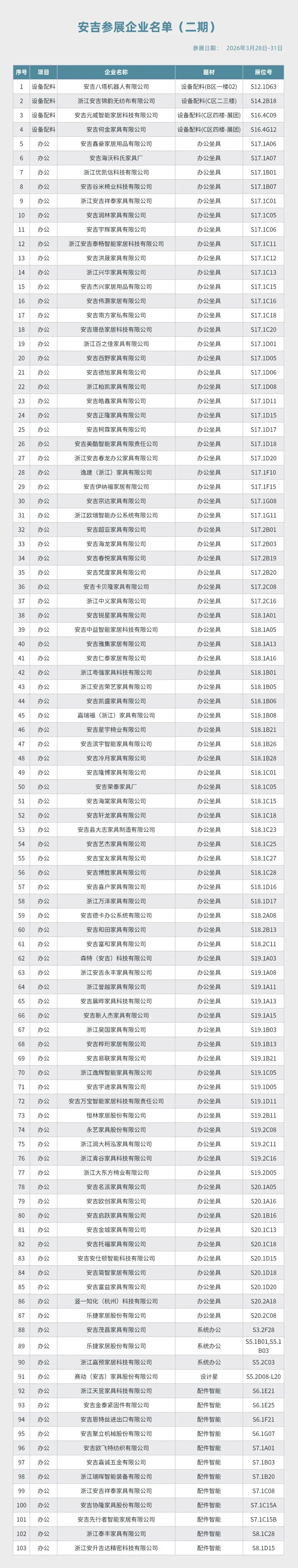 第57届中国(广州)国际家具博览会(二期)安吉参展企业名单(附参观地图)