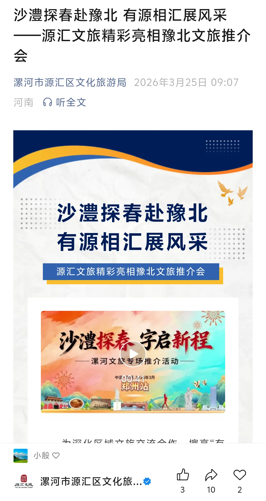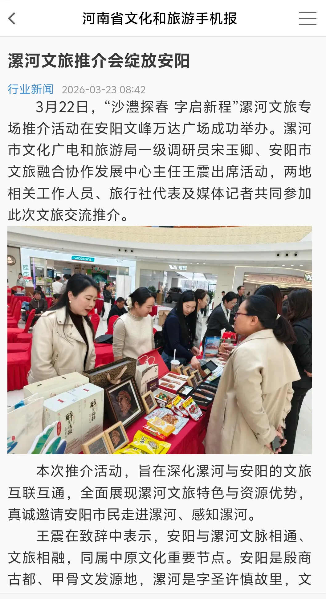为进一步宣传推介神州鸟园丰富的文旅资源与特色旅游产品,持续提升景区知名度与影响力,积极拓展豫北亲子游、自驾游、研学游市场,3月21日—24日,在漯河市文化广电和旅游局、源汇区文化旅游局的组织下,神州鸟园赴濮阳、安阳、郑州三地,集中展示景区核心资源、旅游线路、研学课程。