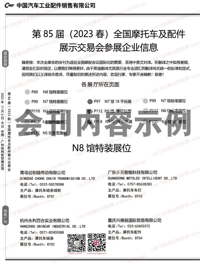 2023重庆第85届全国摩配会会刊|全国摩托车及配件展示交易会展商名录