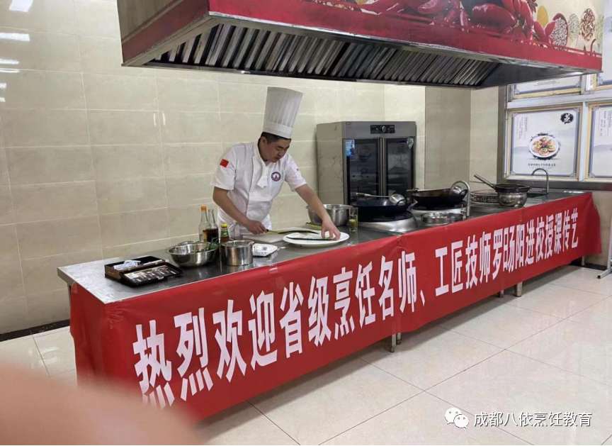 成都八依食尚烹饪教育为继承和发扬中国烹饪文化、大力弘扬工匠精神、提升学生专业技术水平。秉承让每一位学生都“学有所得,学有所获,学有所成”,实现让每位学生都“好就业,就好业,能创业”的目标,特别邀请了省级名师,工匠技师罗旸阳大师进校,与各位同学们开展零距离交流与互动,传授烹饪之道;传播工匠精神;感悟行业标杆力量!