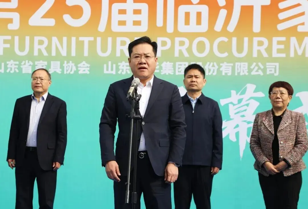 山东省轻工联社党组成员、理事会副主任、社会组织党委书记曹庆生;山东省家具协会主席牛广霞;兰山区委副书记、区政府区长程凯;临沂市工业和信息化局党组成员,临沂市中小企业发展服务中心主任、党委书记王珂;兰山商城管委会主任、党委书记,临沂商城管委会副主任田宗春;山东省轻工联社发展规划部副处长李会勇;临沂市林业局副局长、三级调研员李秀;临沂商城党工委委员、管委会副主任乔继刚;兰山区政协副主席、区工商联主席温秀婷;兰山区商务局党组书记、局长郭振邦;兰山街道党工委副书记、办事处主任付克锋;大健云仓供应链管理有限公司招商总监杜凯;兰华集团党委书记、董事长、总裁管照军等出席开幕式。