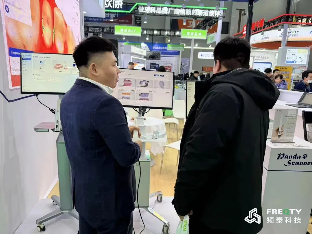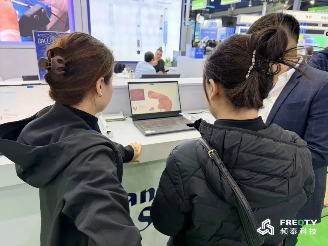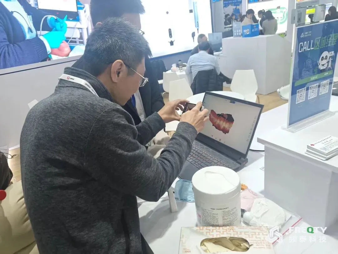 展会现场,频泰科技还进行了实时口内扫描演示,流畅高效的扫描过程引来众多观众围观与赞叹。不少业内人士在现场亲身试扫后,对设备的轻便性和成像稳定性给予了高度评价。