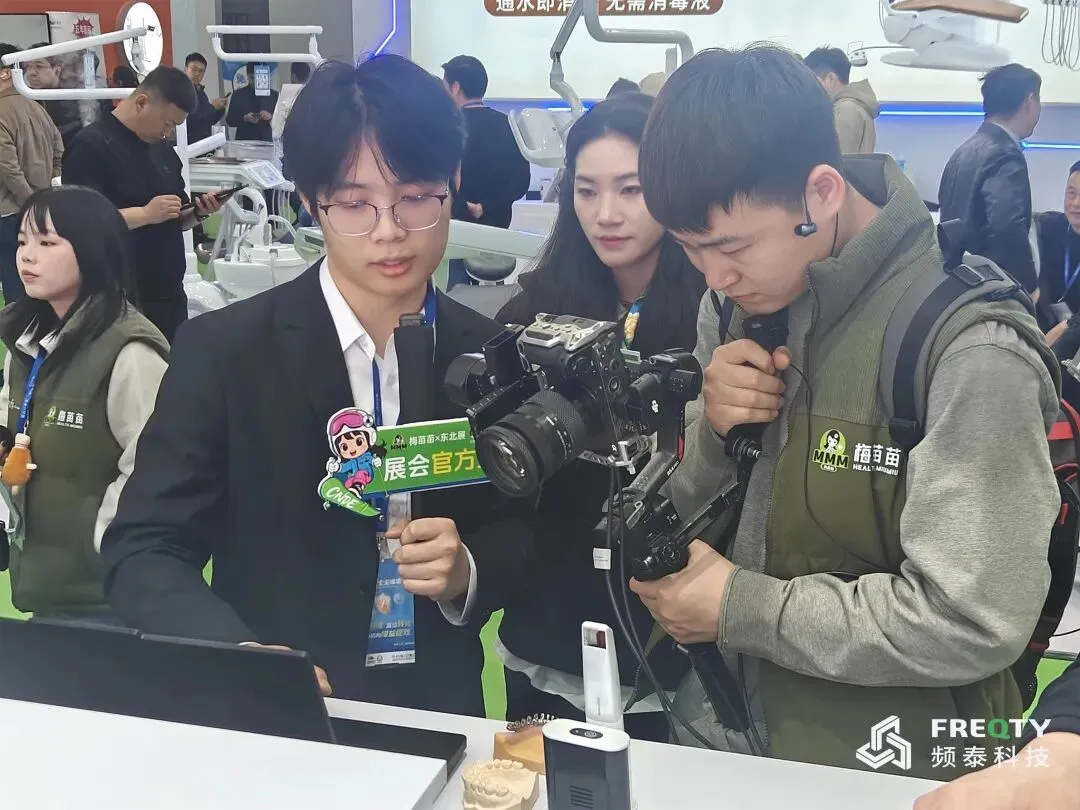 值得一提的是,频泰科技还参与了本届东北国际口腔展与梅苗苗联合打造的展会官方直播间。在展台现场,品牌代表通过直播镜头,为线上观众详细介绍了Panda系列口内扫描仪及配套推车的超高性能与临床应用优势,线上线下联动,进一步扩大了品牌影响力。