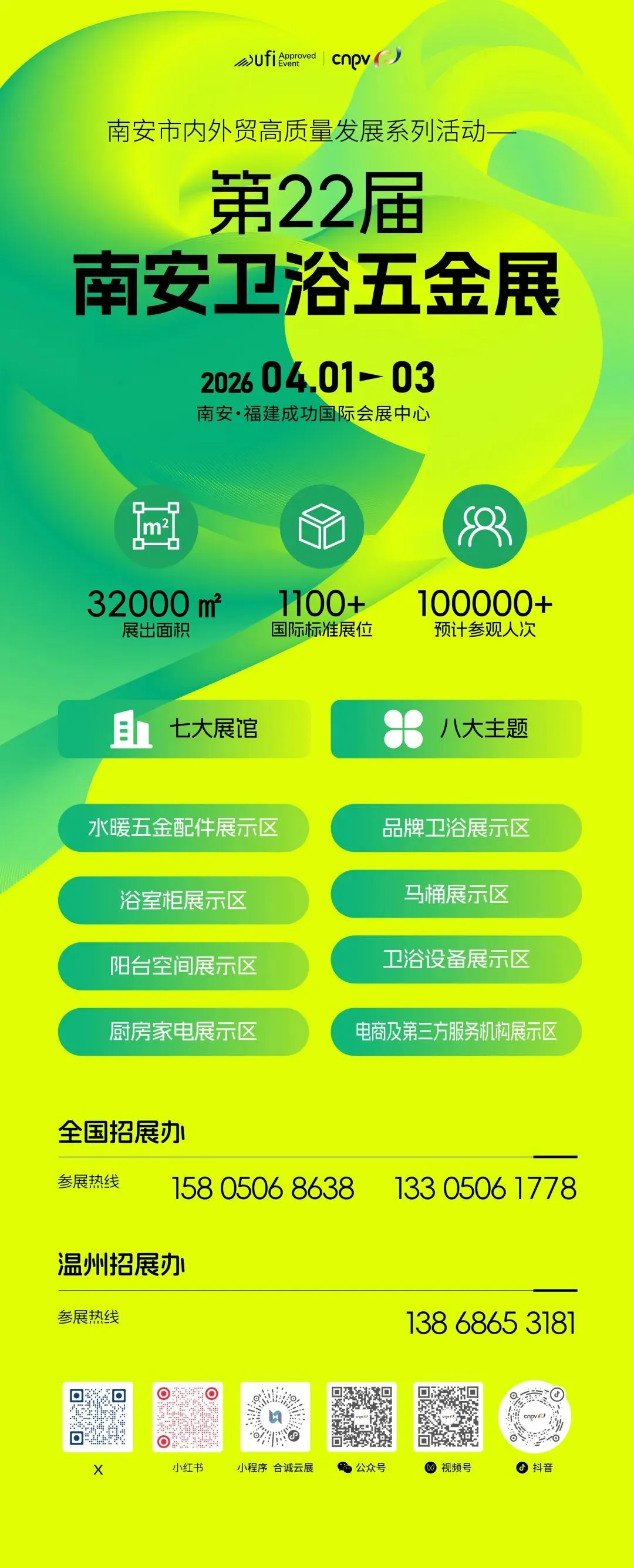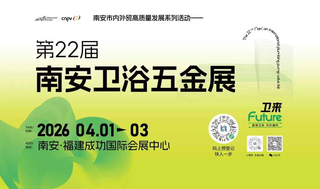 第22届南安卫浴五金展,以22年产区根基为底气,以50万营销大军回归为依托,以覆盖全产业链与价值链的专业活动为引擎,正在构建一个不同于以往的“价值场”。4月1日至3日,福建南安成功国际会展中心。我们邀请您,亲自来看,来谈,来发现——在产业腹地,预见真实的未来!