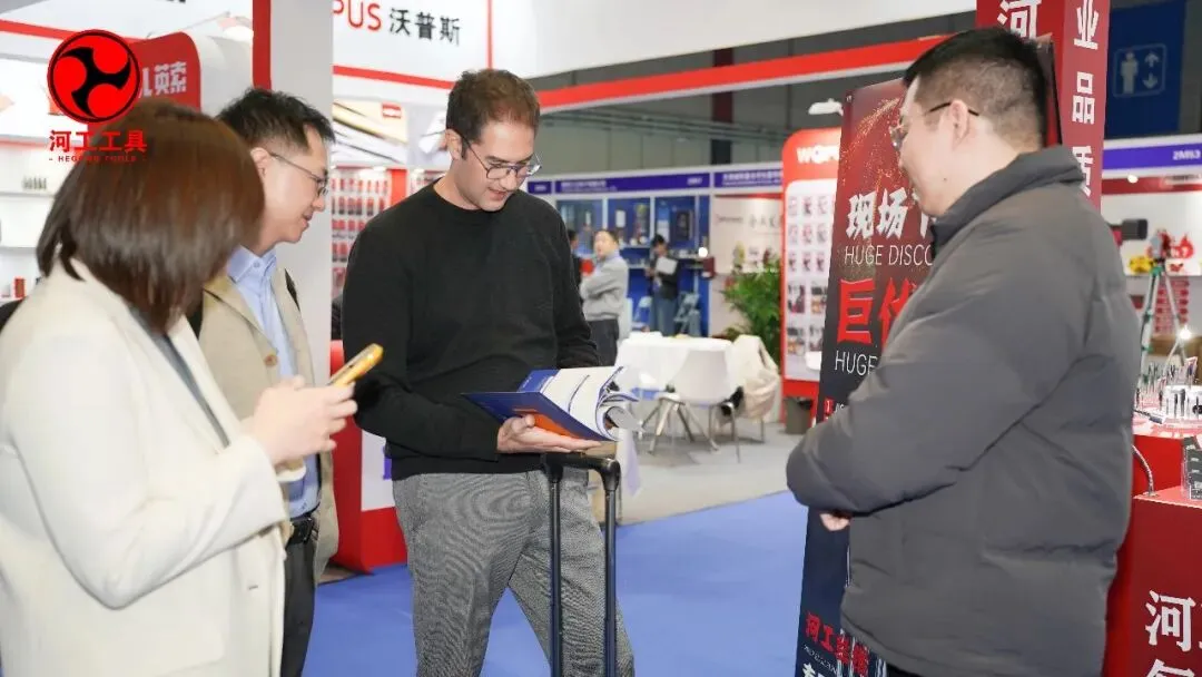 相较于首日的开幕盛况,展会第二天的专业观众更为集中,来自全国各地的经销商、五金加工企业、机械制造厂商、外贸采购商等精准客流,纷纷涌入河工工具展位咨询洽谈。