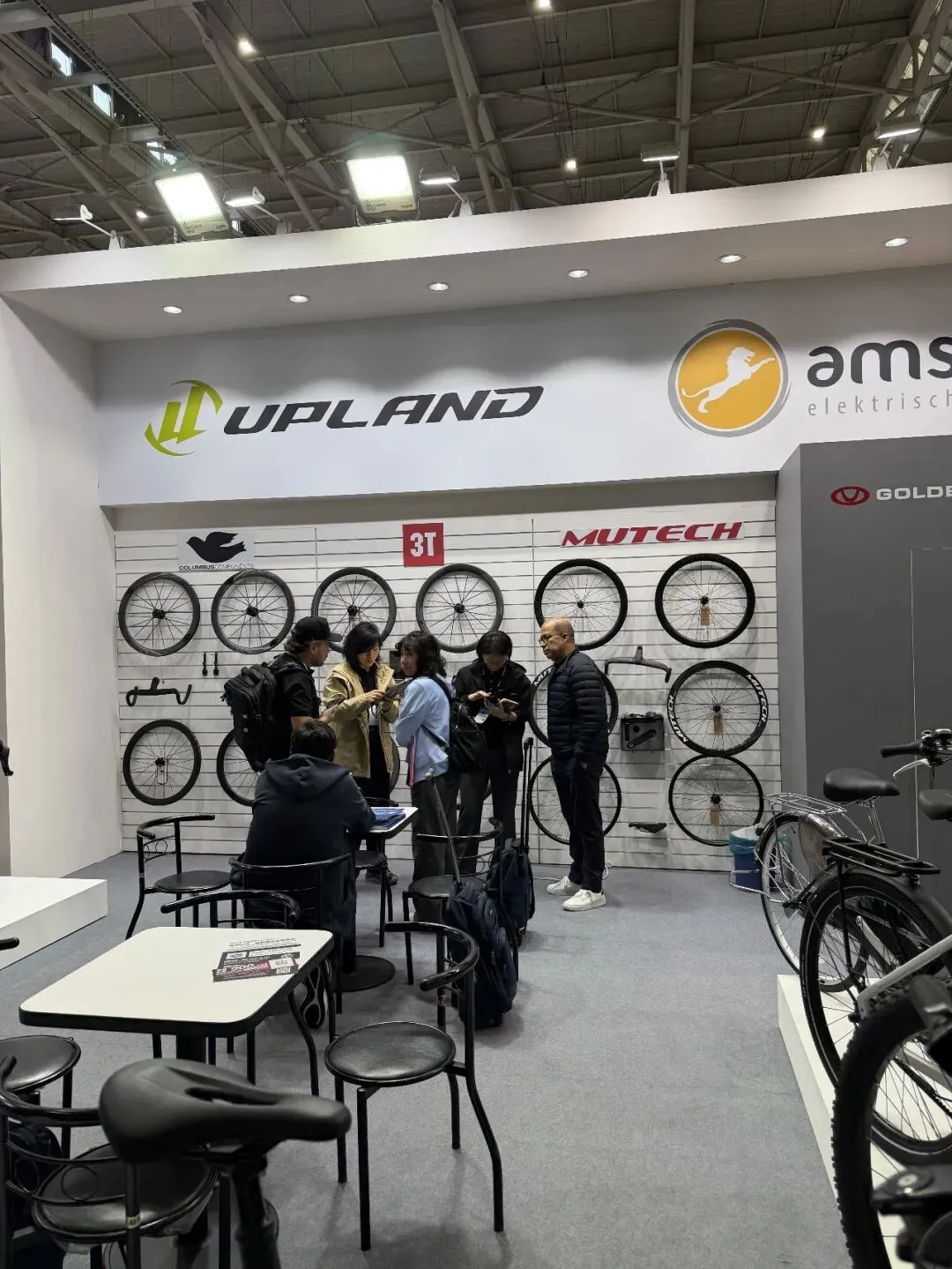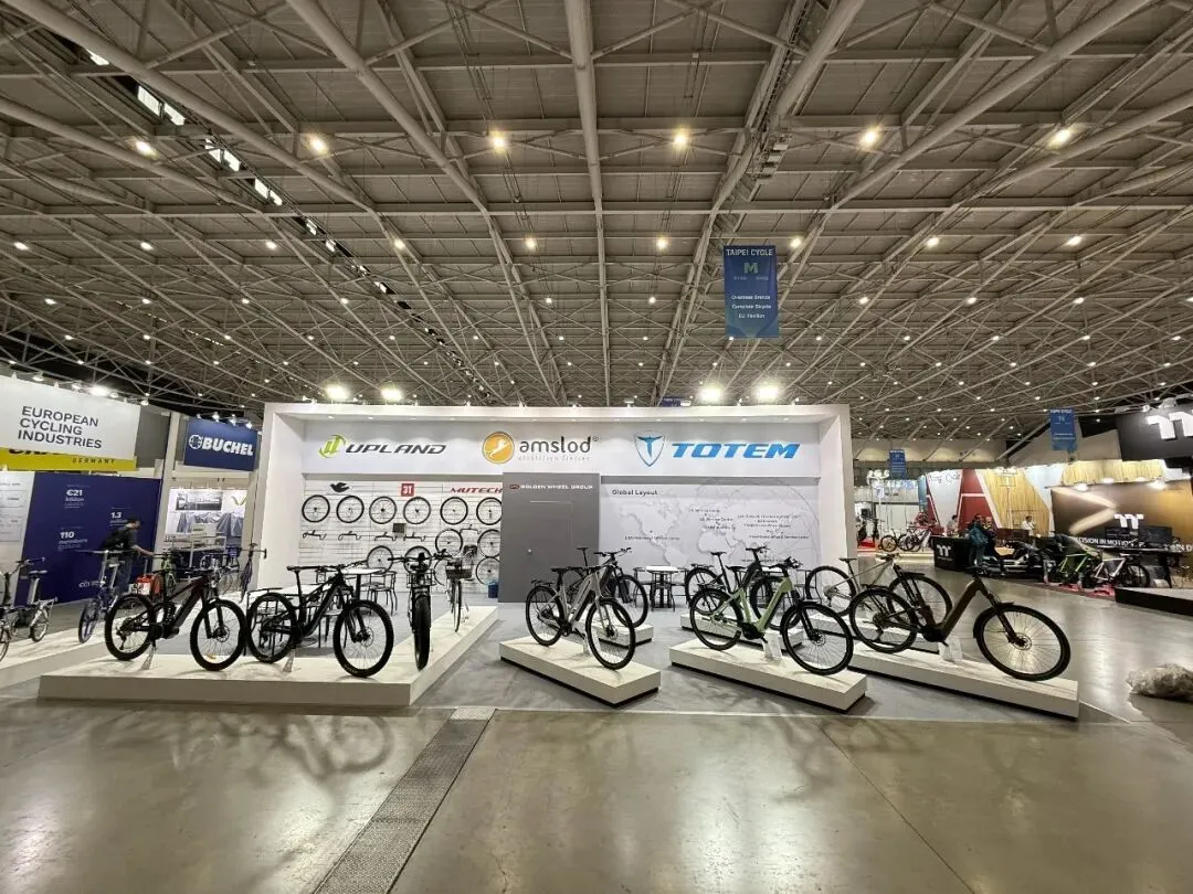 金轮集团作为国内首屈一指的自行车生产企业,此次携佰客屋旗下各个品牌亮相展会,在 M0112展位带来了一场精彩纷呈的产品盛宴。展出的产品涵盖了多个品类和品牌。UPLAND 带来了其独具特色的产品,展现出金轮集团在自主研发方面的实力与成果。来自荷兰的电动自行车品牌 Amslod 重磅登场,自 2015 年起快速发展,现已成为荷兰规模领先的电助力自行车品牌,专注打造高性价比、多元化城市电助力车型,覆盖通勤与休闲骑行,以严苛品质、优质零部件与可靠安全性赢得良好口碑。3T 公路车型惊艳亮相,凭借精湛的意大利工艺和独特设计,在舒适性与稳定性方面表现出色。除公路车型外,COLUMBUS、3T、MUTECH 的轮组和配件也吸引了众多目光,车把、座垫等配件均获得参观者驻足观赏。