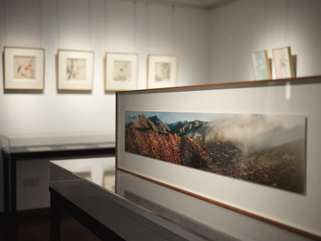 《观·境》通过将两幅航拍全景图对裱,构成两面一体的影像装置。以“转”这一动作,邀请观者亲历“观”的哲学:从如鸟瞰般观天地复归的宏大视野,转身介入僧舍连绵中观色空不二的修行精微。它融合了“观”字自古相传的深邃意蕴 —— 从图腾化的神鸟之眼,到人文审视,直至心性内观 —— 在俯仰与转身转念间,完成一次对存在与觉知的立体观照。
