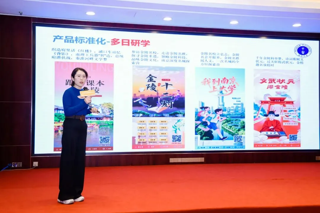 为推动两地研学旅游产业深度合作,本次推介会创新采用“产品推介+洽谈交流”的模式,实现供需两端精准对接、高效联动。在产品推介环节,南京文旅集团、南京汇景研学、南大千智研学三家重点研学旅游企业代表,分别围绕南京全域文旅资源产品、高校名企寻访研学线路、传统文化及非遗体验课程等主题进行专题推介,全面展示南京研学旅游的丰富资源储备与成熟的课程体系。