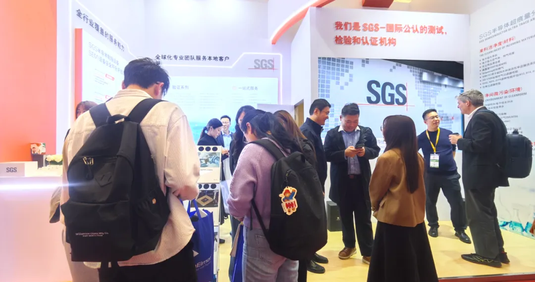 本次展会,SGS紧扣高端制程升级与车规国产化核心需求,重点展示两大核心服务矩阵:一是半导体洁净生产全流程解决方案,涵盖来料洁净度检测、洁净间微污染AMC管控、设备及晶圆洁净度验证等核心服务;二是车规级半导体验证一站式服务,覆盖AEC-Q可靠性验证、汽车功能安全与网络安全认证,同步配套失效分析、ESD测试等技术支持。展会首日,SGS展位便迎来客流高峰,由技术专家与解决方案顾问组成的专属团队,为到场客户提供一对一咨询与定制化方案讲解,现场交流洽谈氛围热烈。