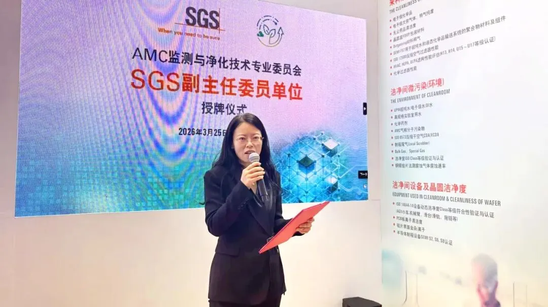 本次同期举行的授牌仪式,是AMC专委会对SGS多年深耕半导体洁净生产领域、助力产业链企业突破制程环境管控瓶颈所做行业贡献的充分肯定,也标志着SGS在半导体AMC监测管控、洁净生产环境全流程技术服务领域的核心能力,获得行业专业平台的高度认可。