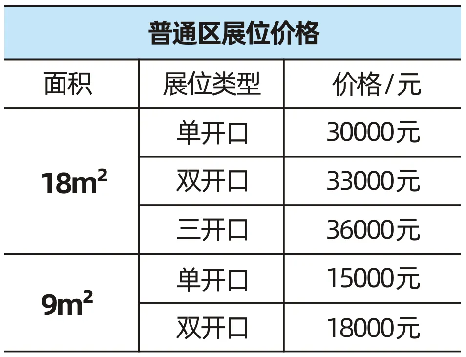 标展分为9㎡、18㎡两种类型,具体费用如下: