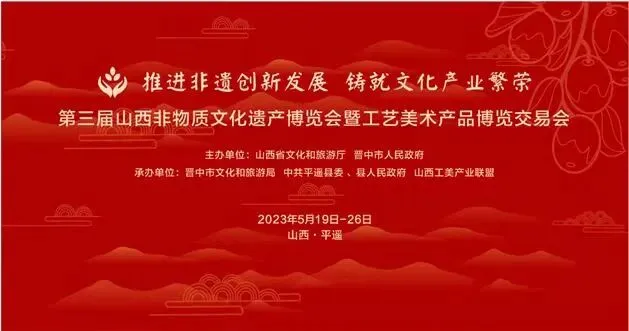 第三届山西非物质文化遗产博览会暨工艺美术产品博览交易会于2023年5月19日-26日在平遥电影宫、原平遥县棉织厂、唐都推光漆器博物馆盛大开幕。