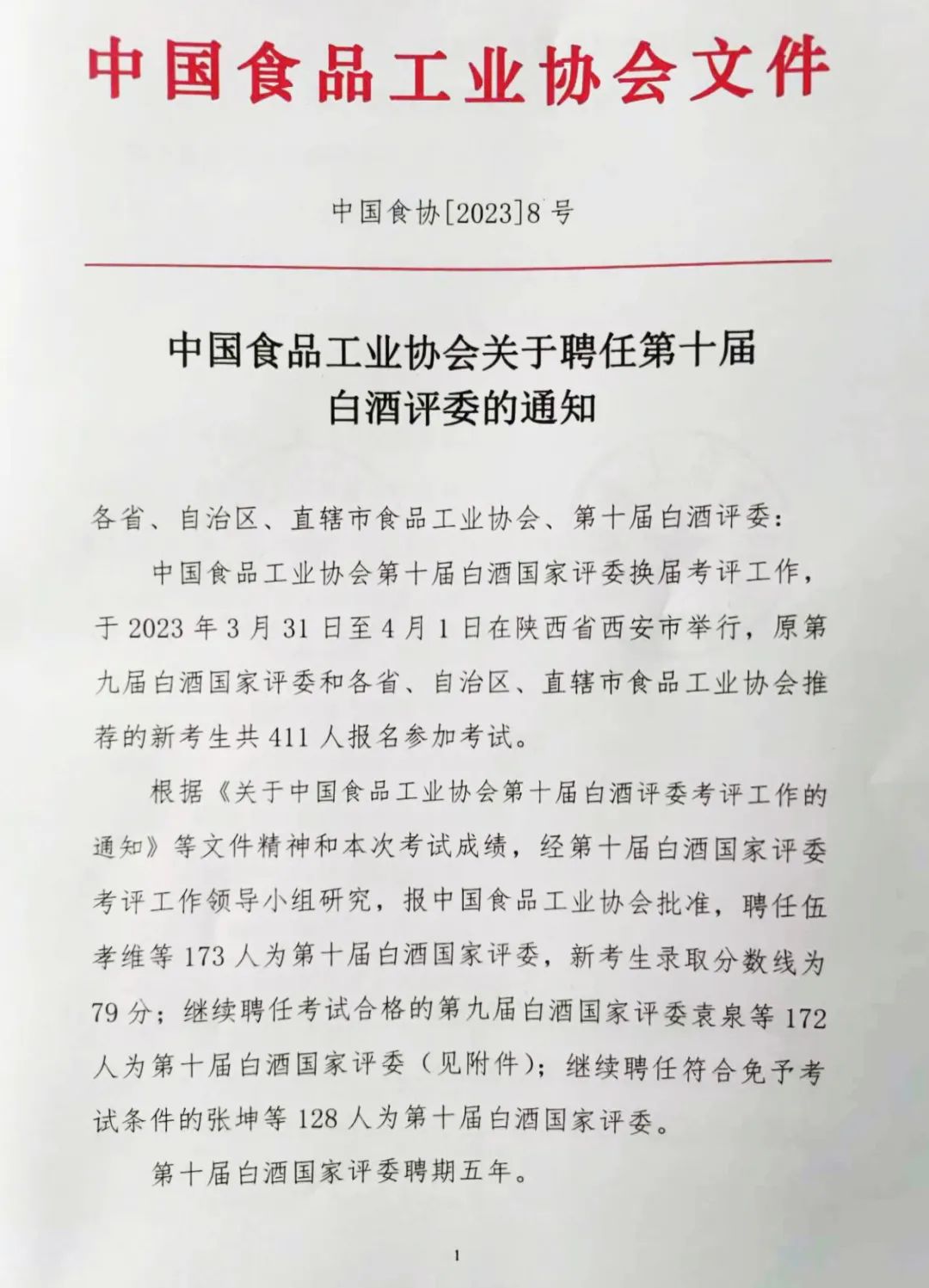 近日,中国食品工业协会发布通知,根据今年3月31日至4月1日在陕西西安举办的第十届白酒国家评委换届考评结果,秦池酒业张新东通过层层推荐、选拔、考试,获聘为新一届白酒国家评委。秦池专业人才队伍建设再添新成果,为企业稳步发展进一步夯实人才基础。