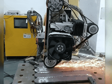 机器人抓取砂带机打磨,高效处理金属板材,双接触轮设计,可实现限位打磨及柔性力控打磨,稳定可靠、一致性强。