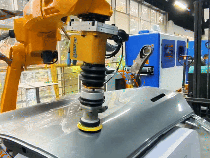 径向柔性浮动 + 全姿态力控,可补偿角度 ±5°的公差,完美贴合车门门板曲面,高效处理合模线、焊点,满足汽车行业高标准表面要求。