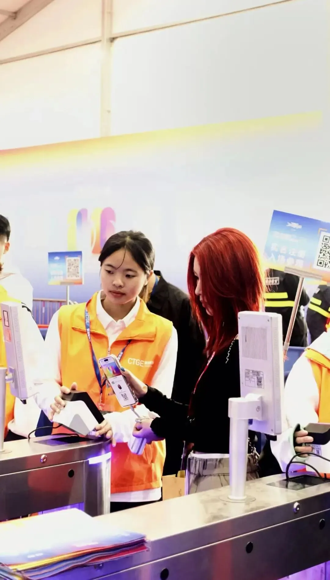 展商入口是整场展会最繁忙的区域之一。冼依琳在这里学会了高效沟通与快速应变,看着展商们顺利入场时的笑容,她真切感受到:微小的坚守,也能支撑起展会的顺畅运转。