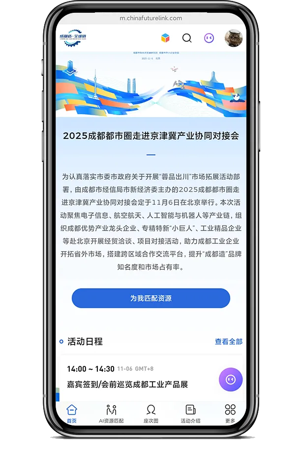 在去年的2025 成都都市圈走进京津冀产业协同对接会中,富青会展云为大会提供了AI 供需匹配系统全程支持。现场不少参会企业就使用了我们的AI供需匹配系统,用最自然的方式提问:“帮我匹配合作资源”“我要找能对接的上下游企业”....