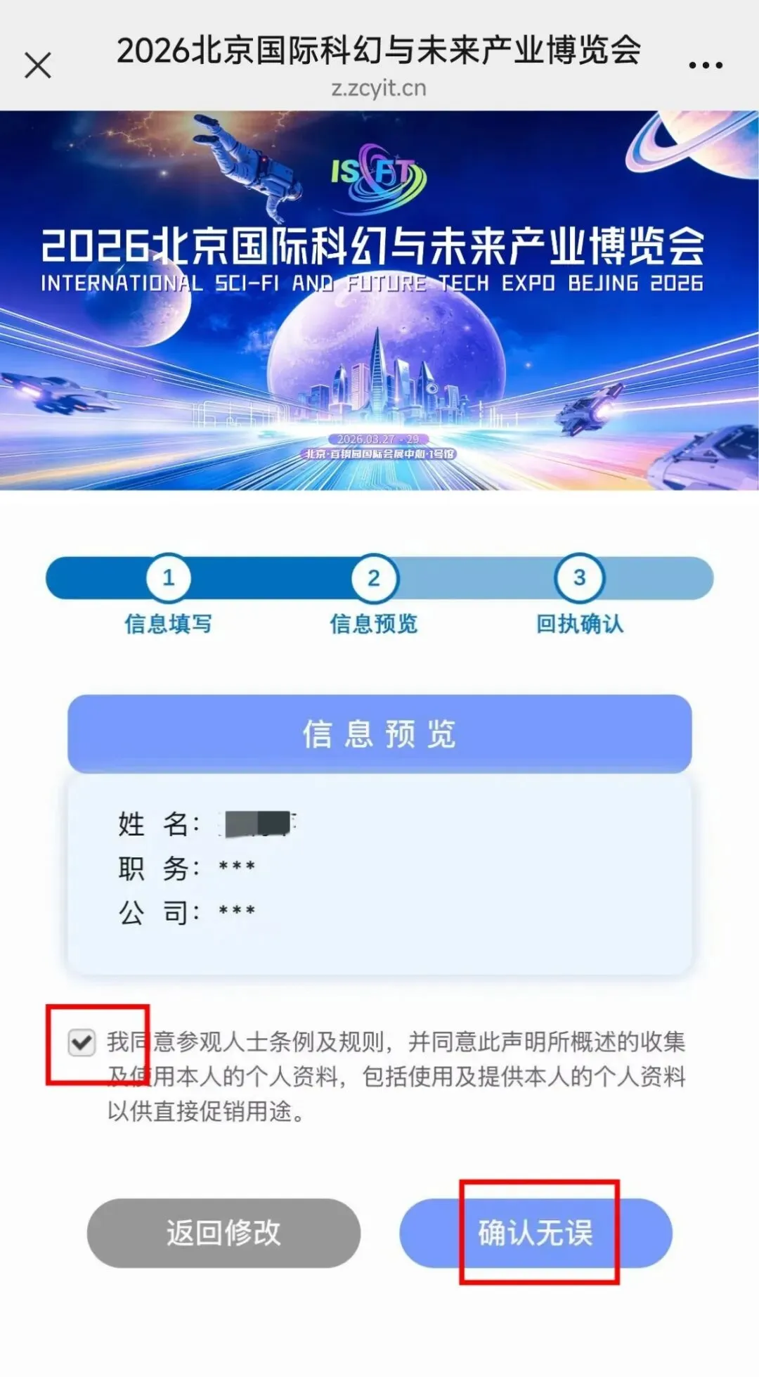 1、登记入口:扫描展会官方发布的观众预登记二维码,进入专属登记页面