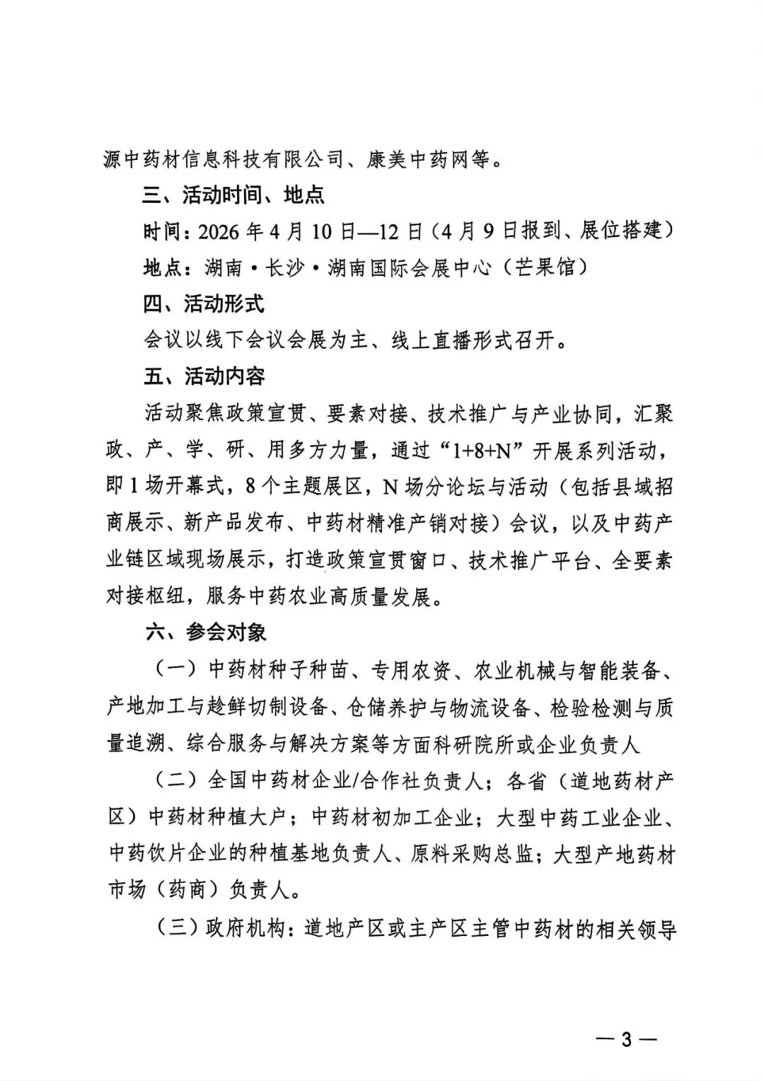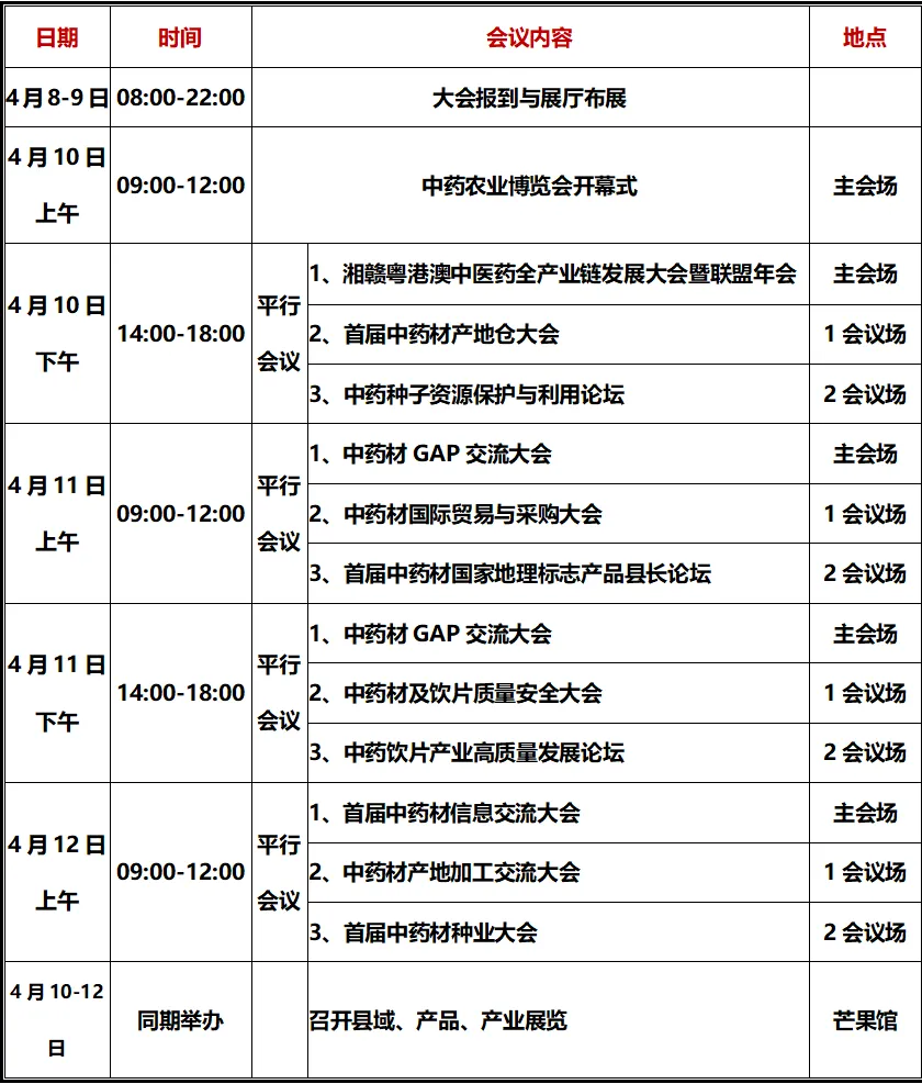 活动聚焦政策宣贯,要素对接,技术推广与产业协同,汇聚政,产,学,研,用多方力量,通过"1+8+N"开展系列活动,即1场开幕式,8个主题展区,N场分论坛与活动(包括县域招商展示,新产品发布,中药材精准产销对接)会议,以及中药产业链区域现场展示,打造政策宣贯窗口,技术推广平台,全要素对接枢纽,服务中药农业高质量发展