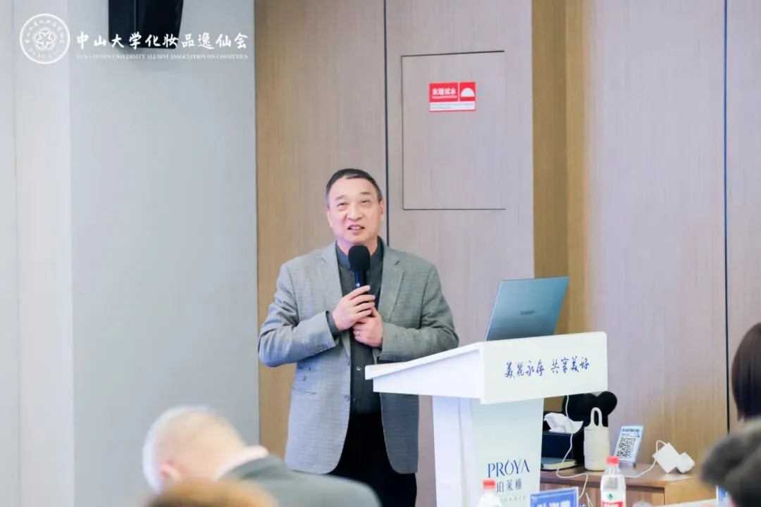 随后,中山大学化妆品逸仙会王德友会长以视频形式致辞。虽因工作安排未能亲临现场,但他特别表达了对本次交流的重视,也对校友之间持续深入产业、加强连接寄予期待。