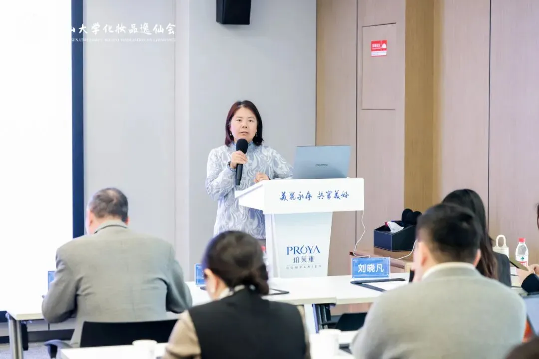 珀莱雅集团金衍华副总经理首先致辞,对逸仙会一行的到访表示热烈欢迎,也分享了珀莱雅近年来的发展与思考。