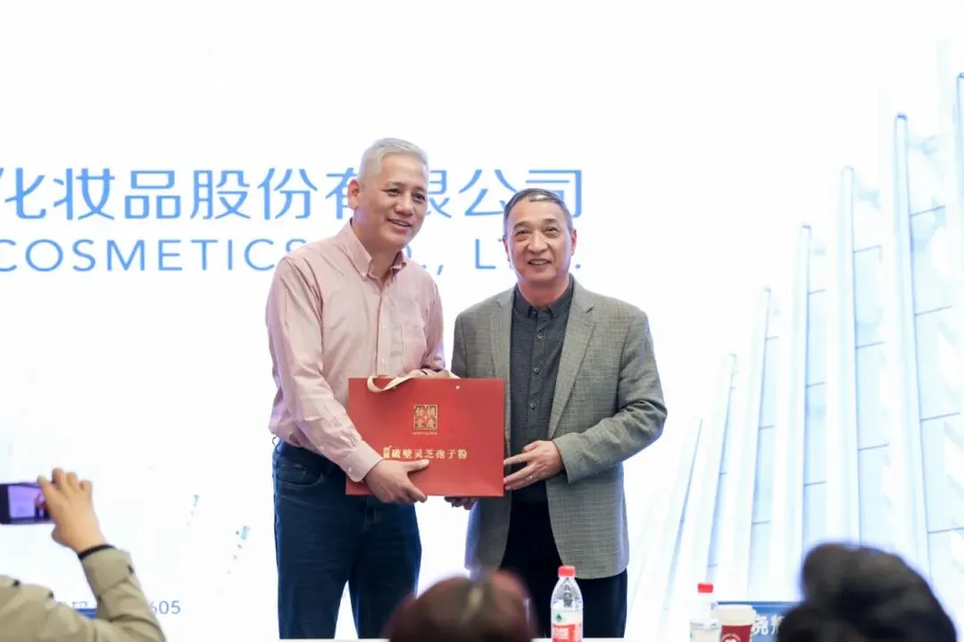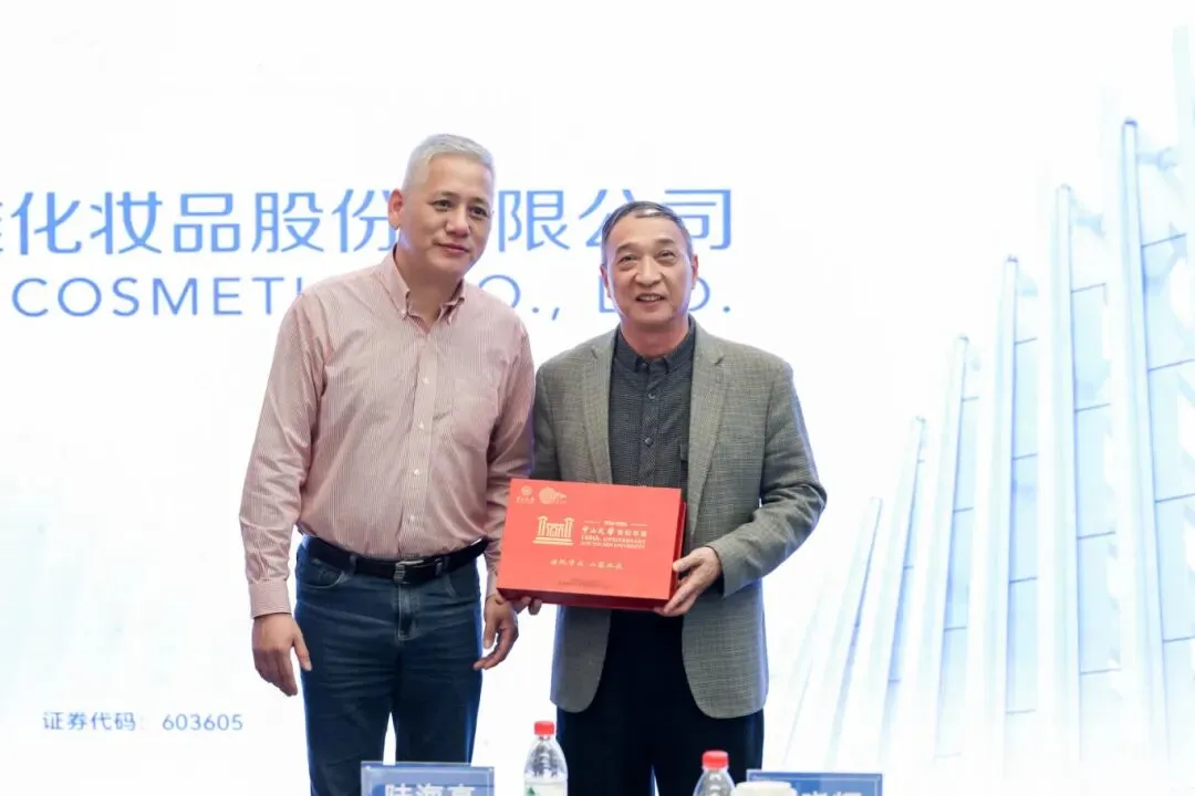随后,逸仙会代表何晓辉向珀莱雅赠送纪念品,对方也回赠礼物。