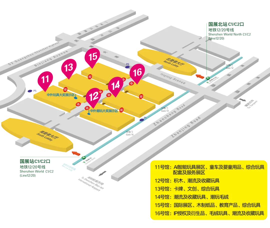 地铁:深圳地铁12号线、20号线国展站C1、C2出口可直达展馆南登录大厅
