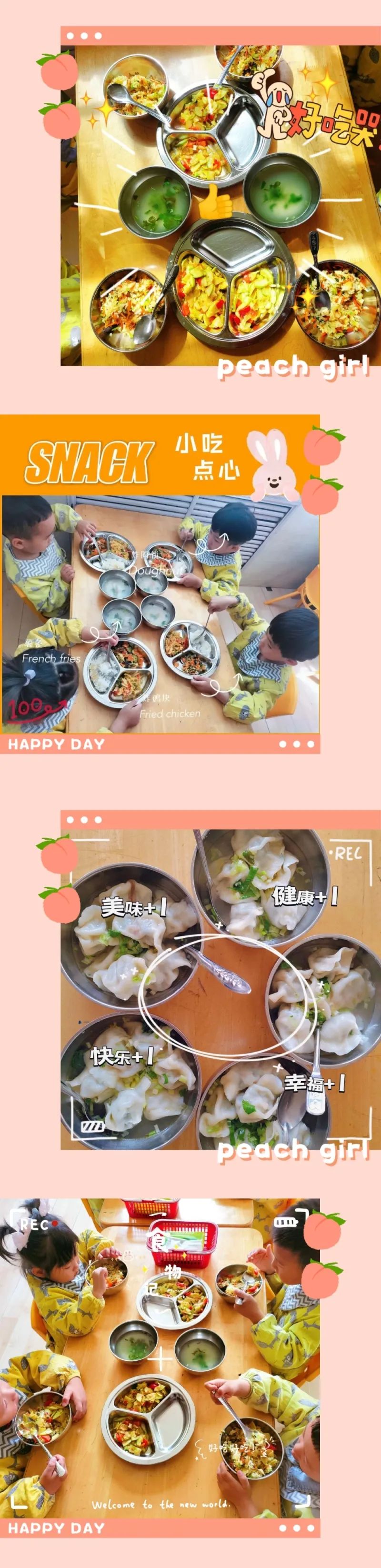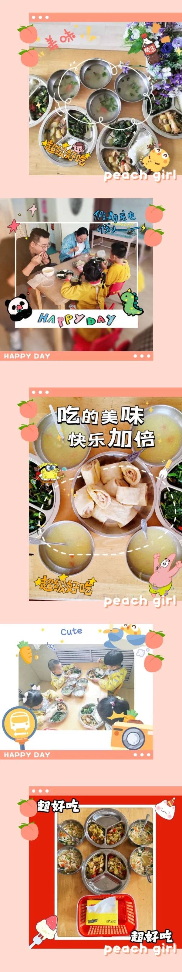 我们每一餐都秉持幼儿膳食“全面、均衡、营养”的原则,根据季节挑选当季时令瓜果蔬菜、新鲜水果、蔬菜、肉蛋奶、谷物等,这些食物富含丰富的膳食纤维,进行科学配比,制定每周营养食谱,每周更新。