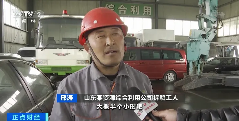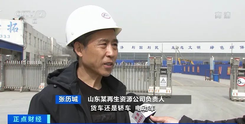 山东某再生资源公司负责人 张历城:货车、轿车、电动车,加起来6万辆。整体的投资在1亿元左右。
