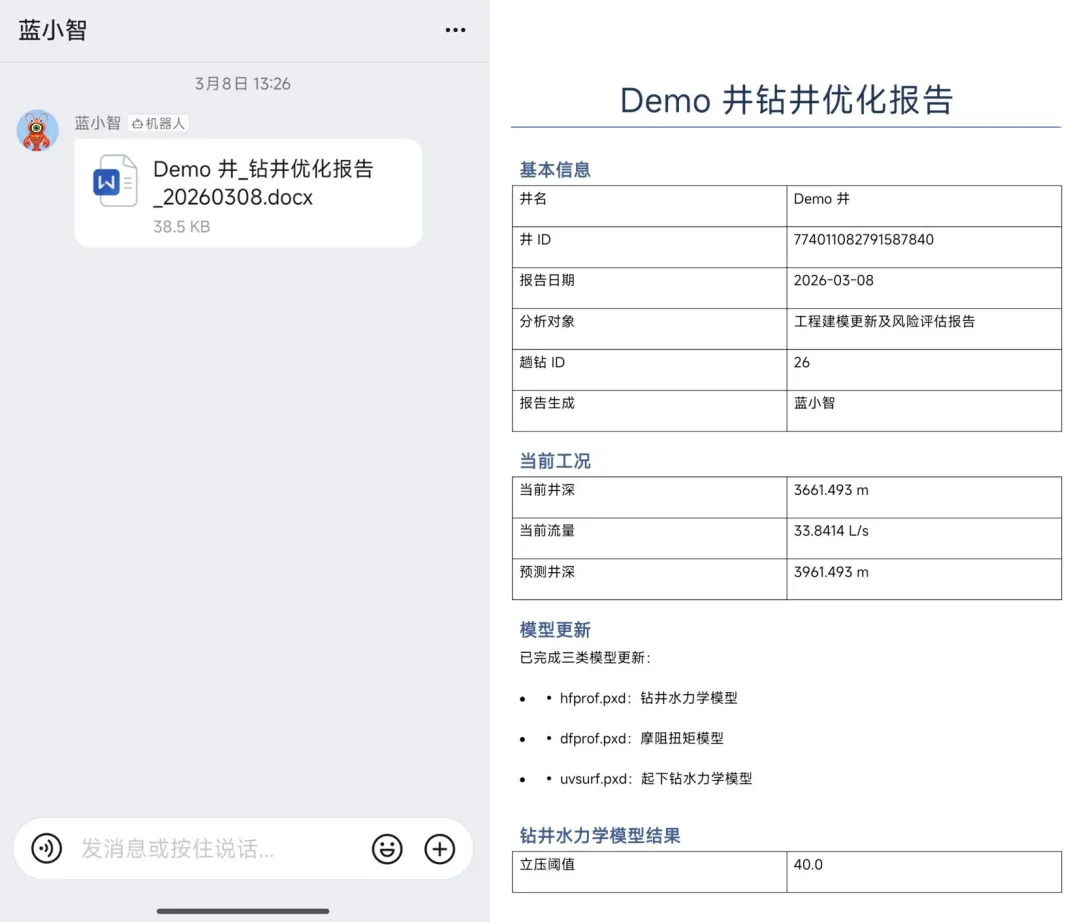 · 一键报告生成:依托丰富且强大的SKILL技能引擎,“神开数字化员工”能将碎片化的系统数据瞬间提炼,自动撰写并生成专业的钻井优化报告,实现从查数据到写报告的秒级跨越。