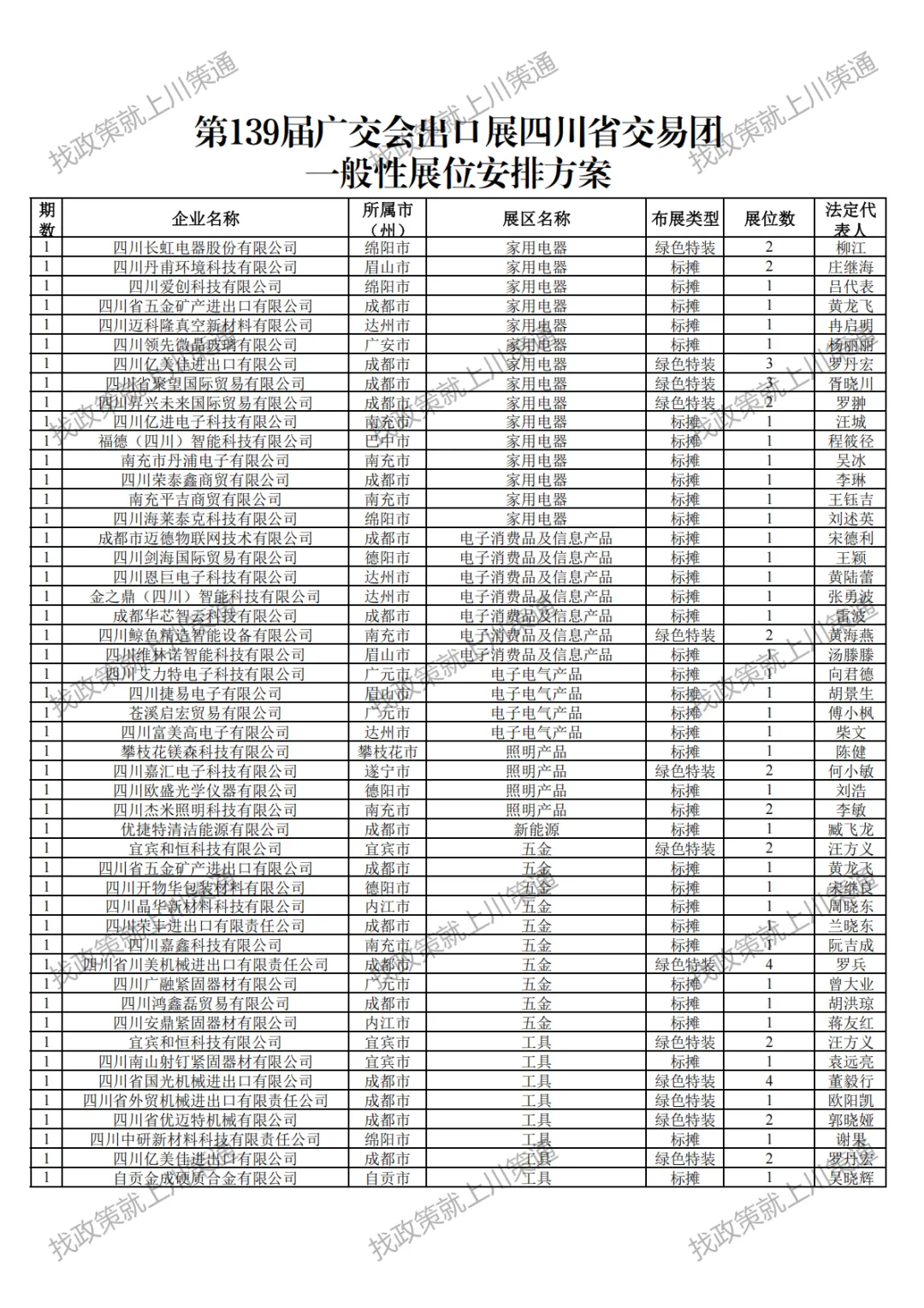 根据商务部《中国进出口商品交易会出口展一般性展位数量安排办法》要求,四川省交易团按照《中国进出口商品交易会出口展四川省交易团一般性展位安排实施细则》规定,在企业自愿申请、市(州)商务主管部门推荐、专业会计审计机构评分的基础上,结合全省外贸发展实际,形成《第139届广交会出口展四川省交易团一般性展位安排方案》。