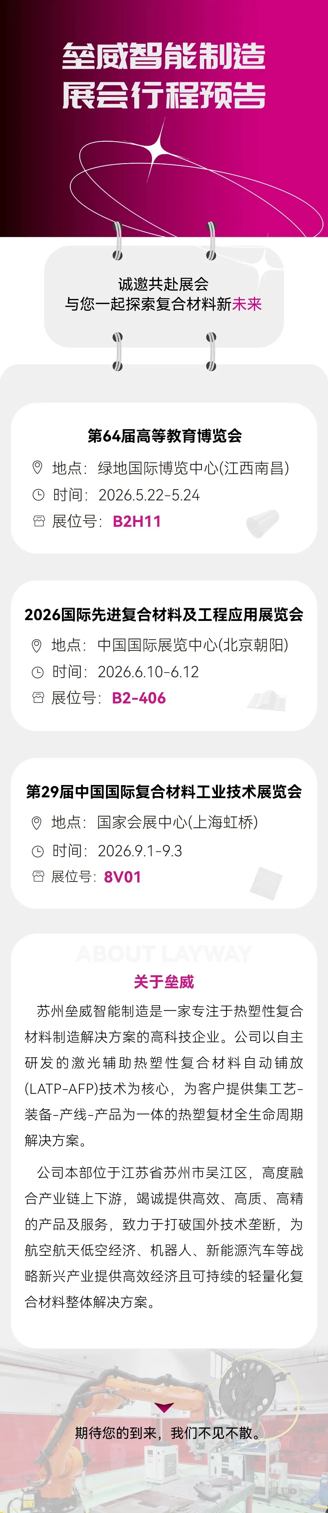 垒威智能制造展会行程预告