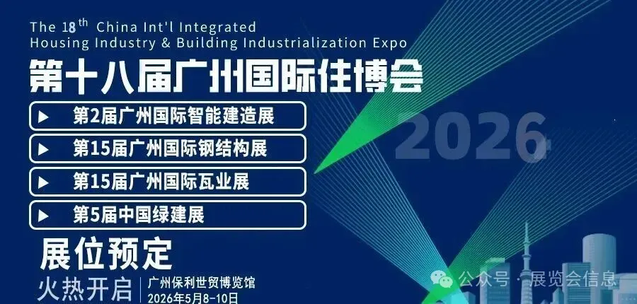 同期活动2026全球模块化建筑发展峰会暨装配式房屋海外项目采购对接会2026内地与香港智能建造发展论坛2026第五届大湾区钢结构智能建造与建筑工业化技术交流会2026广东省“光伏+建筑”农房设计大赛交流会2026第2届广州国际智能建造与工业化建筑产业博览会2026第5届中国绿色建材与装配式建筑及智能建造展2026第6届混凝土及砂浆展暨产业发展大会2026第15届广州国际建筑钢结构、空间结构及金属材料设备展2026第16届广州国际瓦业交易会暨制瓦工业展2026第17届亚太地坪展