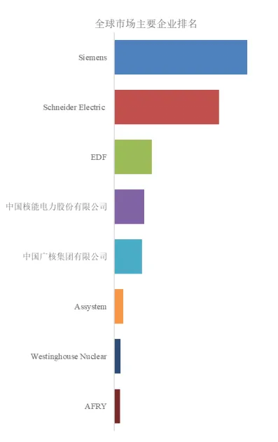 全球核电站数字孪生市场呈现“双雄领跑、梯队分明、生态协同” 的竞争格局。第一梯队由 Siemens 与Schneider Electric 构成,两者合计占据市场近半壁江山。这两家工业数字化巨头凭借其在数字孪生平台、工业软件及全生命周期管理领域的全栈技术能力,为核电站提供从设计仿真到运维优化的端到端解决方案,深度参与全球新建核电项目及数字化改造,掌握行业标准话语权。第二梯队包括EDF、CNNP 与 CGN 三家核电运营巨头。它们依托本国大规模核电装机及数十年的运营经验,将数字孪生技术深度内化为核岛仿真、老化管理及运维决策的核心工具,并通过项目总包带动自主数字化能力输出,在特定机组及本土市场形成稳固优势。第三梯队由Assystem、Westinghouse Nuclear 及AFRY 等专业工程与技术服务商构成。它们在核岛工程仿真、安全分析及老化管理等细分领域深耕,为前两个梯队提供核心算法、工程咨询及运维支持,是生态系统中不可或缺的专业协同层。整体而言,市场由掌握工业数字化平台的巨头与自主核电技术的运营企业共同主导,客户关系高度锁定,新进入者需在特定技术环节或区域市场寻求突破。