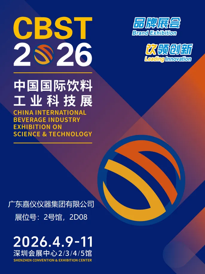 2026年4月9-11日,第十四届中国国际饮料工业科技展(CBST2026)将在深圳开幕。嘉仪仪器(展位号:2号馆,2D08)携全新智能检测方案重磅登场!现场更有技术白皮书赠送及专家一对一答疑,期待您的莅临!