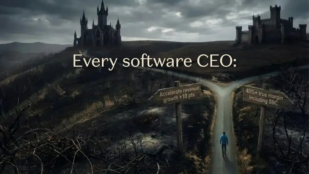 严格来说,这两项举措并非互斥。但我怀疑,12-18个月的计划必须二选一。到明年年底,处于高增长和高利润路径之间的一切地带,看起来都将像“无人区”:增长压力、持续的稀释以及估值倍数的压缩。如今的CEO需要制定清晰的举措,以推动公司走向其中之一作为最终产出。