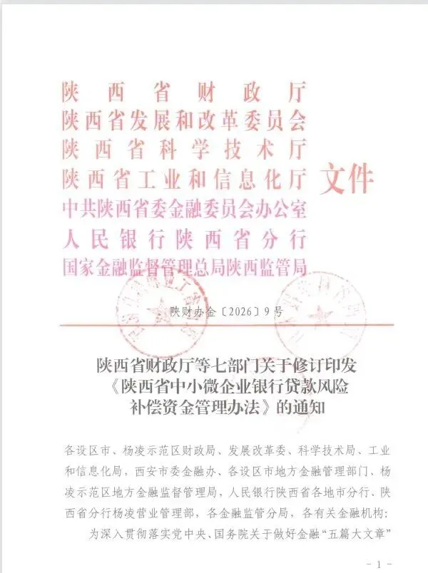 陕西七部门联合发文,中小微企业贷款风险补偿升级!