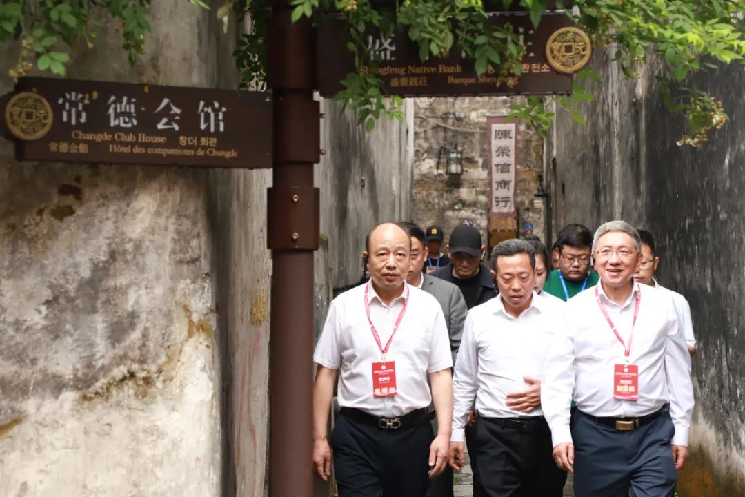参观期间考察团代表了解到洪江古商城坐落于沅江、巫水汇合处,是中国濒水区域原真性古建筑群体量最大的地方。起源春秋,鼎盛明清,以集散桐油、木材、白腊等而闻名,是湘滇黔桂鄂五省物资集散地,湘西南地区经济、文化、商业中心,现保存完好的明、清古建筑如寺院、镖局、钱庄、商号、洋行、作坊、店铺、客栈、青楼、报社、烟馆等共380多栋,总面积约30万平方米,被誉为“中华商业故宫”。