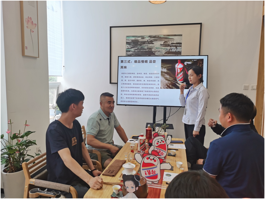 以美相聚,共享佳酿。我司选用53度飞天茅台酒、43度飞天茅台酒、53度茅台1935酒三款产品让在场嘉宾品鉴。品评讲解员杨晓雪从茅台酒的茅台文化、酿酒工艺、包装细节和品鉴四式等几方面,带领嘉宾沉浸式体验53度飞天茅台酒的“波澜壮阔”、43度飞天茅台酒的“平和之美”及53度茅台1935的“臻雅细腻”,领略茅台酒的独具匠心和品质之美。