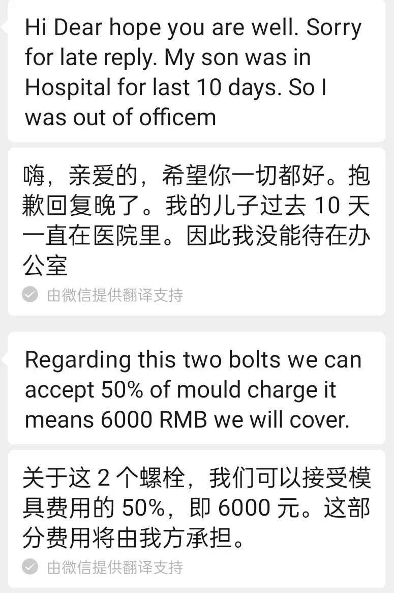 客户很快回复了。让我意外的是,他没有直接同意,但提出了一个折中方案:“我们可以承担一半模具费,6000元。”