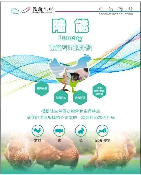 四川乾能生物科技有限公司是新一代胆汁酸源头生产企业,脱胎于生物提取制药企业,是由动物营养专家、医药产业资深从业者联合创建的新型动物营养与保健专业化科技公司,公司总部位于四川眉山天府新区,并在江苏、江西、广东等地设立分公司及研发基地,公司秉承“专注脂肪营养、服务人类健康”“让每一粒脂肪都能被健康利用”的经营理念,联结国内外多家高校、科研院所和科技型企业,组建多名教授、博士及丰富养殖生产经验的技术人员组成的人才团队,进行组织化、专业化的产品生产和技术服务,探索当前高营养强度背景下的动物健康养殖发展道路,提供提高动物养殖效益的营养调控综合解决方案。