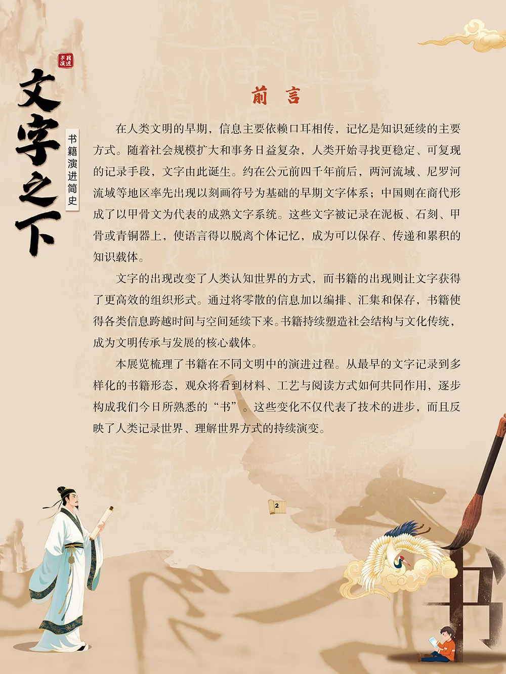 本展览梳理了书籍在不同文明中的演进过程。从最早的文字记录到多样化的书籍形态,观众将看到材料、工艺与阅读方式如何共同作用,逐步构成我们今日所熟悉的“书”。这些变化不仅代表了技术的进步,而且反映了人类记录世界、理解世界方式的持续演变。