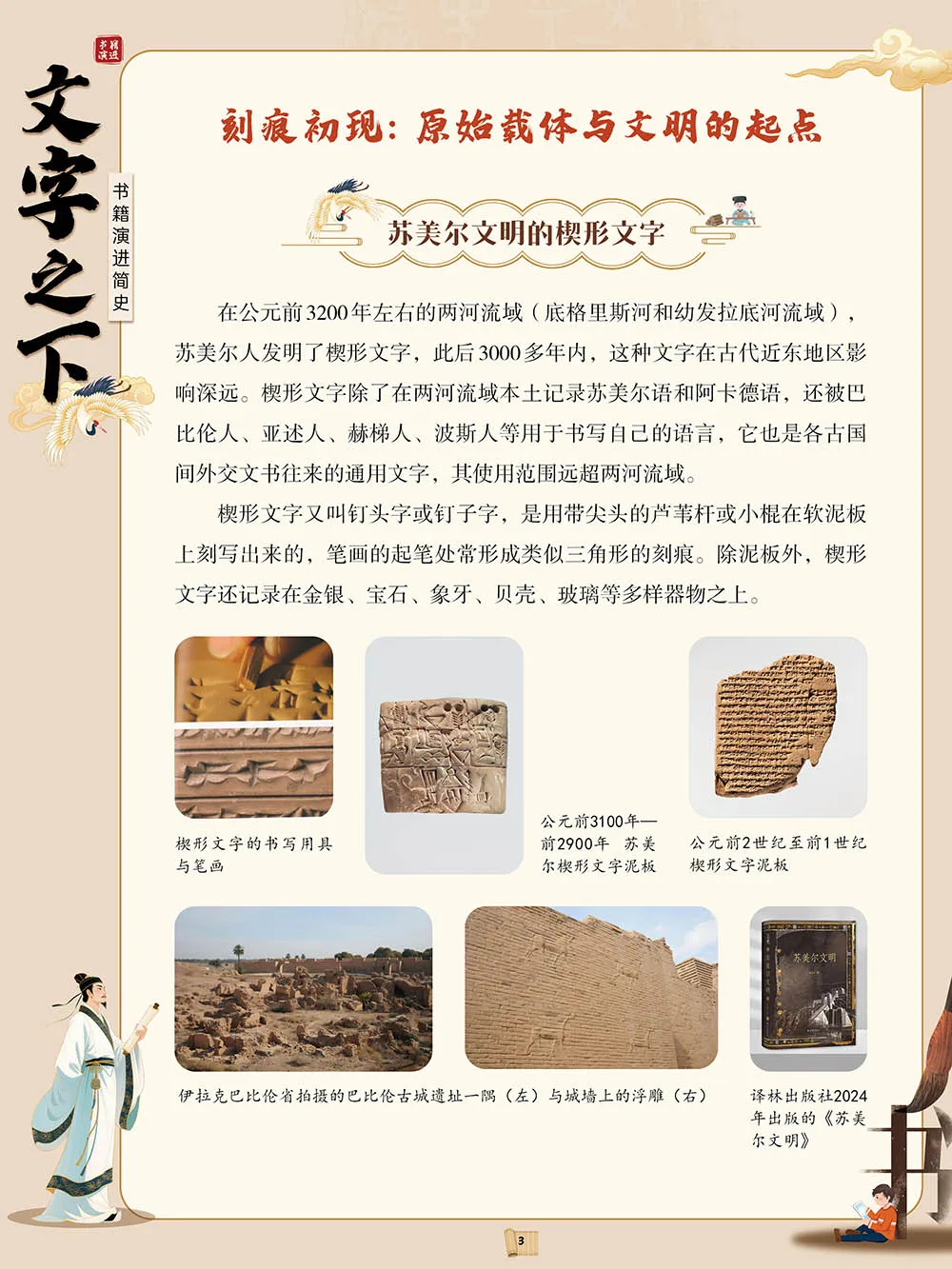 在人类文明的早期,信息主要依赖口耳相传,记忆是知识延续的主要方式。随着社会规模扩大和事务日益复杂,人类开始寻找更稳定、可复现的记录手段,文字由此诞生。约在公元前四千年前后,两河流域、尼罗河流域等地区率先出现以刻画符号为基础的早期文字体系;中国则在商代形成了以甲骨文为代表的成熟文字系统。